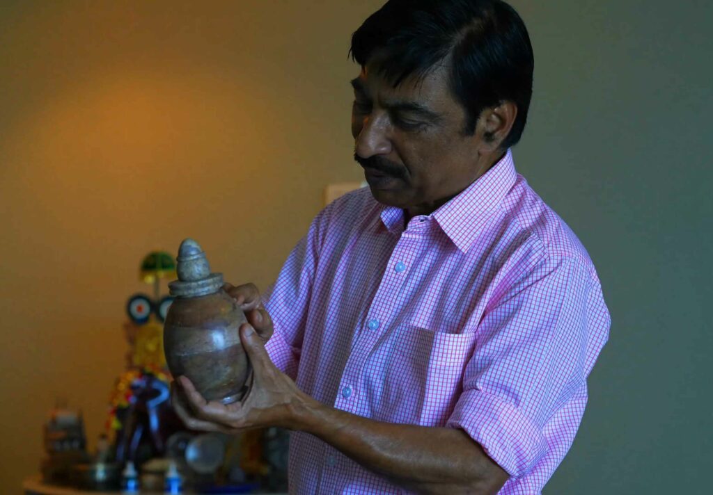 l) He also generously showed us a replica Relic Casket, originally containing the holy ashes of Lord Buddha, which was discovered during the excavation of Kapilvastu—where Buddha spent his childhood. Dr. Muhammad filled this replica with sands from four holy places of Buddhism: Lumbini (Buddha’s birthplace), Bodh Gaya (where he attained Enlightenment), Sarnath (where he gave his first sermon), and Kushinagar (where he passed away). His intention in showing us this replica relic was to emphasize that India could greatly benefit from aggressively promoting religious tourism, similar to Sri Lanka and Nepal.